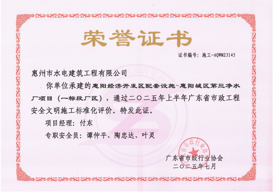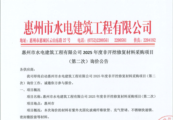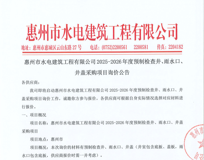 惠州市水电建筑工程有限公司成立于一九六四年四月,隶属惠州市水务集团有限公司,是一家国有综合性施工企业,主营水利水电工程、房屋建筑、市政工程等施工业务。公司拥有水利水电工程施工总承包一级、建筑工程施工总承包一级、市政公用工程施工总承包一级、公路工程施工总承包三级,公路路基、路面及建筑装修装饰专业承包二级,环保工程、机电安装、河湖整治、输变电工程专业承包三级等经营资质……